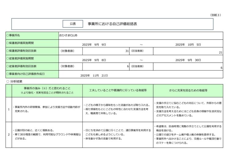 おひさまCLUB(別紙3)自己評価総括表(公表)