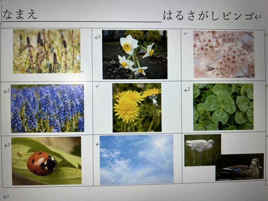 ニュース 2024/05/10 春探し 近くの公園にでかけて、春探しビンゴ! 「あ、みつけた」 たくさん見つけることが出来ました♪ 園庭の春を集めて、閉じ込めました。 どこに置こうかな? 子ども達はとても考えていました。 追伸 おひさまCLUBに新しい命が生まれました!