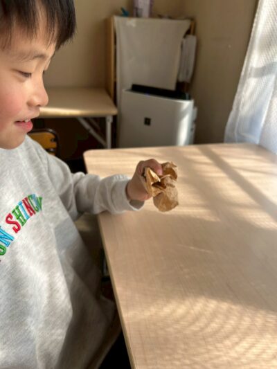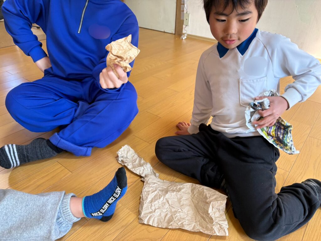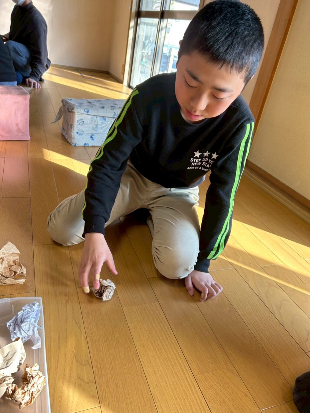 ニュース 2026/03/17 丸められるかな 紙を片手のみで丸める活動を行いました。一見、地味な活動に見えますが、とても力を使います。今回の活動では握力や指先の力を養います。 大きな紙は丸めきるまでに時間がかかるため、両手を使ってしまいそうになる子どもたちもいましたが、コツをつかむと「どれだけ小さく丸められるか勝負!」と競い合い、楽しみながら取り組んでいました。ご自宅にある、どんな紙でもできますので、是非チャレンジをしてみてください☆